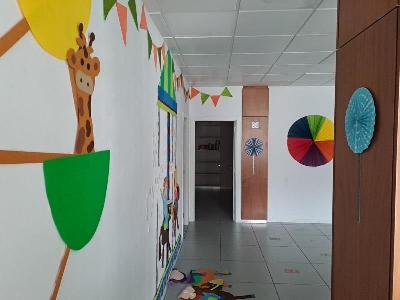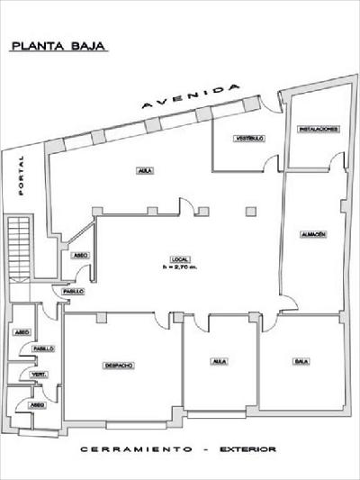 Planta baja distribuída en vestíbulo, espacios de aulas, despacho, sala de reuniónes, almacén y aseos.Planta sótano distribuida en un espacio diáfano.