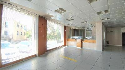 Excelente local comercial en esquina, de 212 m2, situado en la planta baja de un edificio de viviendas, con acceso directo a pie de calle, con amplias cristaleras en las fachadas de 23,6 m y 5,15 m respectivamente, acondicionado como oficina bancaria y distribuido en una zona diáfana para atención al público, varios despachos, almacén, archivo y aseos. No dispone de salida de humos.