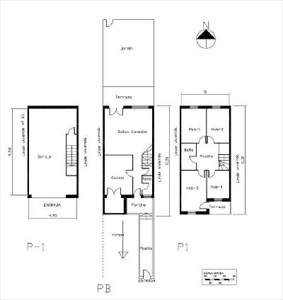 Desarrollada en tres plantas. Distribución planta baja: acceso con porche, salón-comedor que da acceso al jardín, cocina independiente amueblada y un aseo. Planta primera: cuatro dormitorios (uno de ellos con acceso a terraza) y un baño completo. Plata -1: amplio garaje.