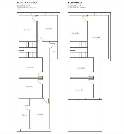- Planta primera con comedor, cocina independiente, tres salas sin uso definido, un dormitorio y un baño.