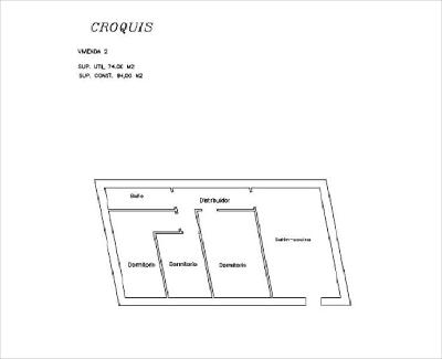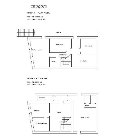 - Vivienda 2: casa distribuida en zona de estar-cocina, tres dormitorios y un bajo.